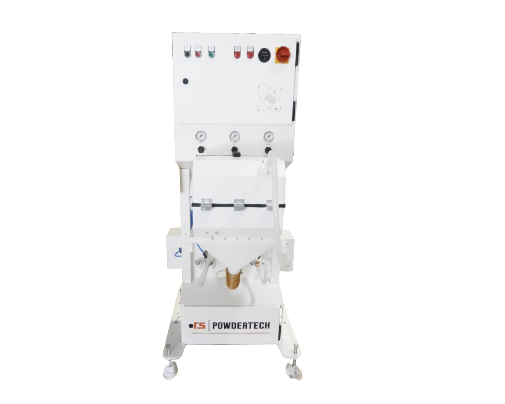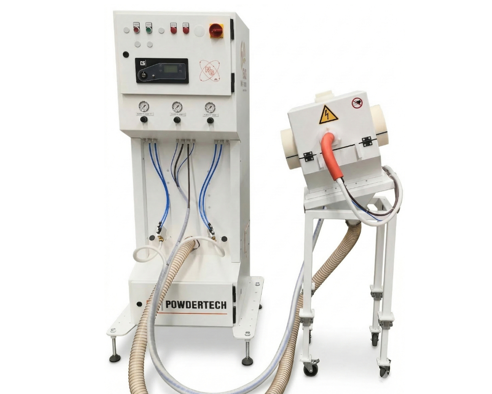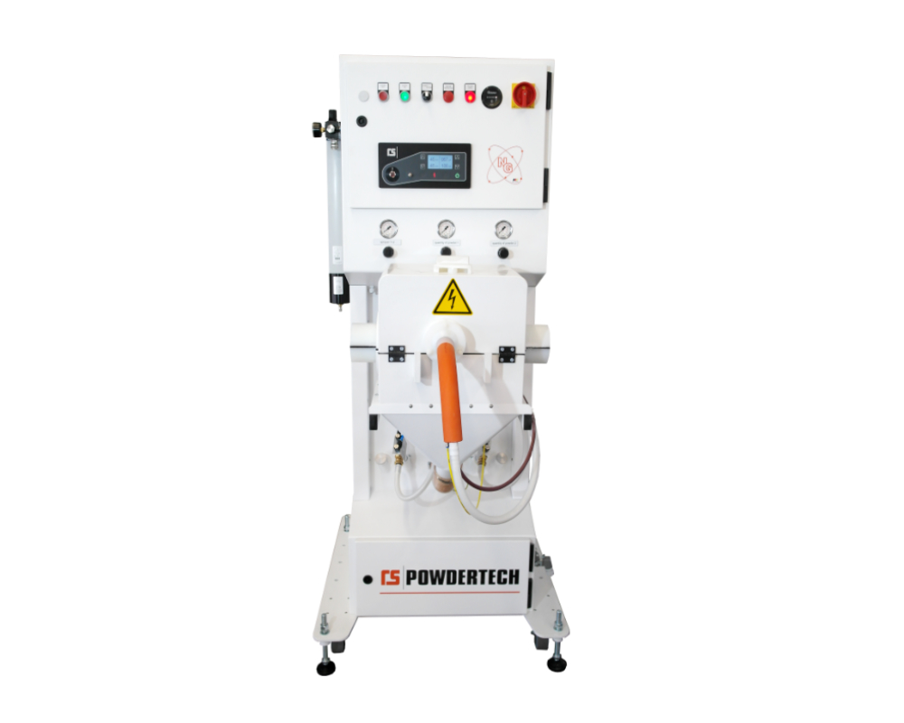 Kompakte Sicherheits-Puderpistole mit kontinuierlicher Spülfunktion zur Reinigung und Herabsetzung des Verschleißes. Austauschbare Prallteller zur Anpassung spezielle Anforderungen. „Poka Yoke Prinzip“ zur Fehlervermeidung bei der Wartung.